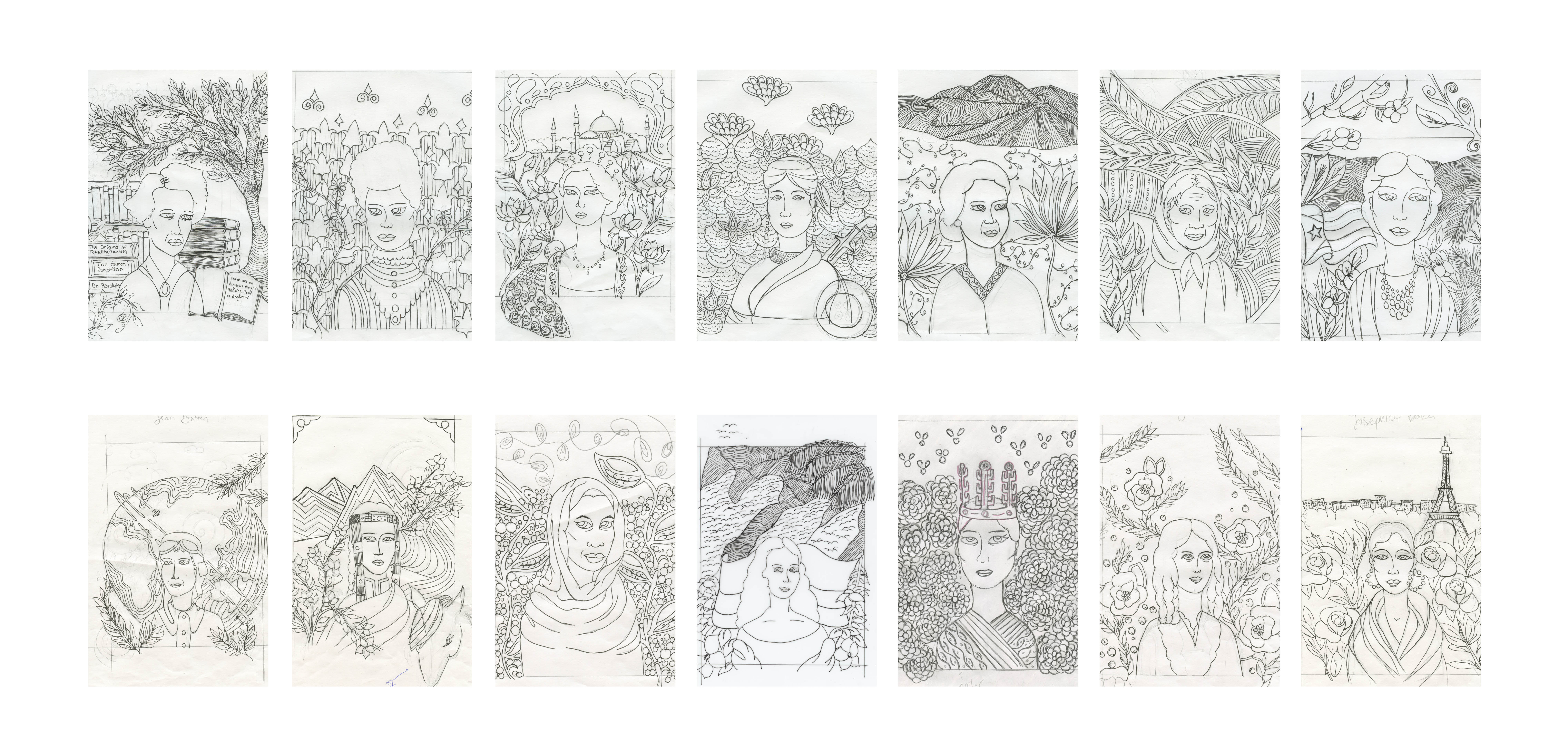 The goal of this project was to create a cohesive series of illustrations that reflect the biographies of the women featured in Jewell’s book.