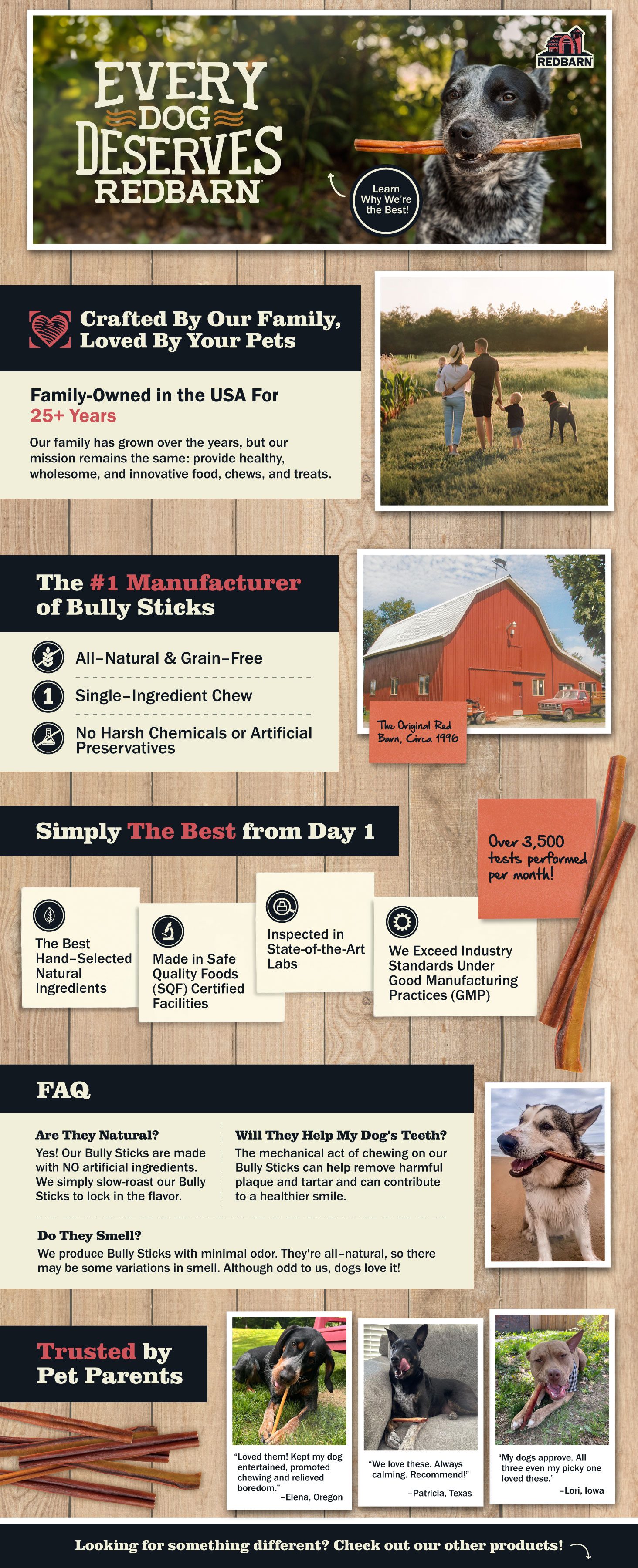 As a brand, Redbarn prides itself on delivering high-quality, natural food and treats to pet parents and their furry family members. Its visual identity brings that promise to life through hardworking farm cues, rustic textures, and vintage-inspired details, reflecting the brand’s deep heritage and commitment to quality since 1996.