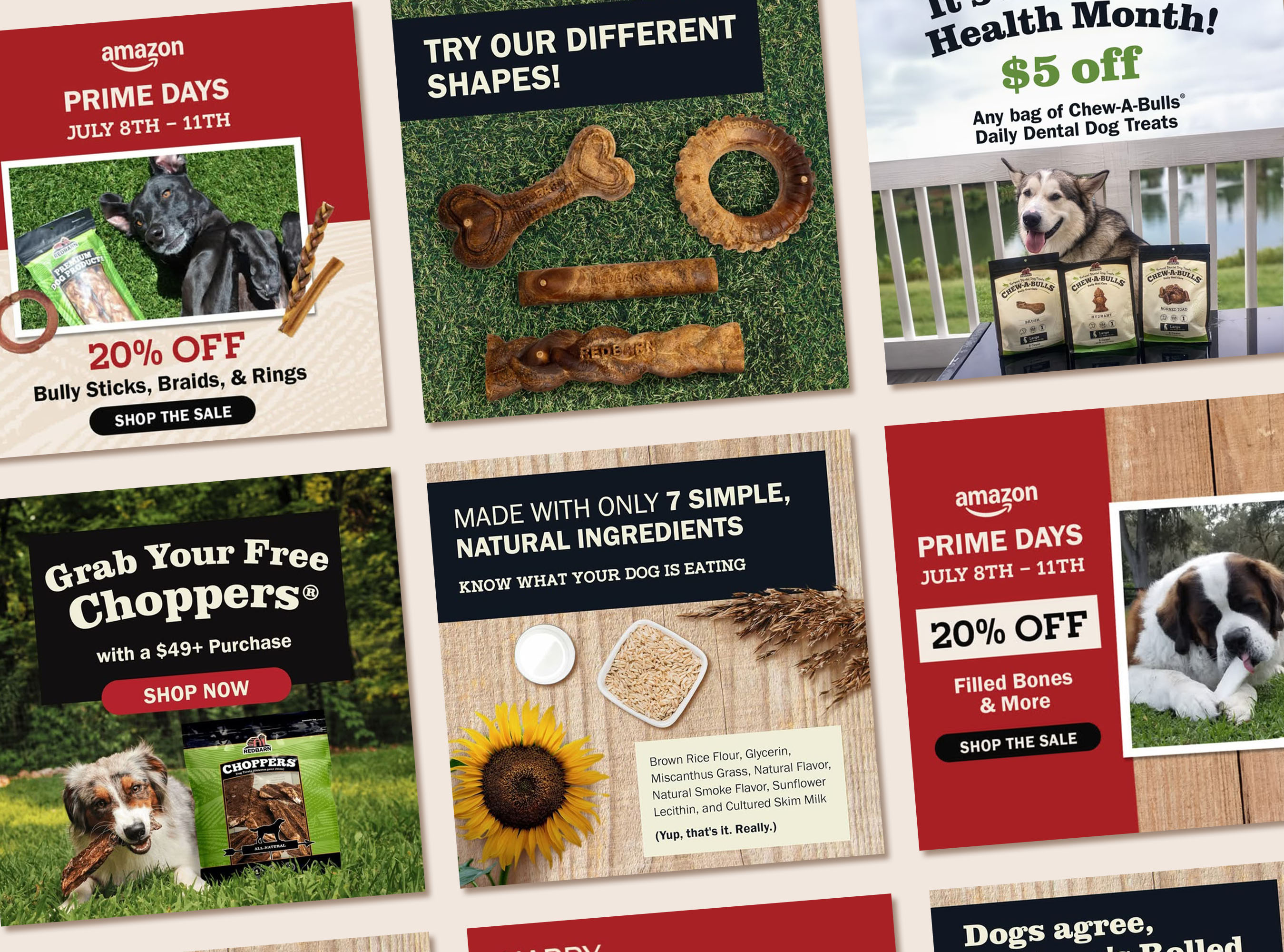 Featured below is a showcase of some of the work I’ve done for Redbarn outside of product campaign launches. My work spanned across several digital platforms from Redbarn’s website to online marketplaces like Amazon and Chewy.